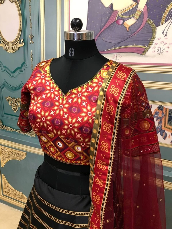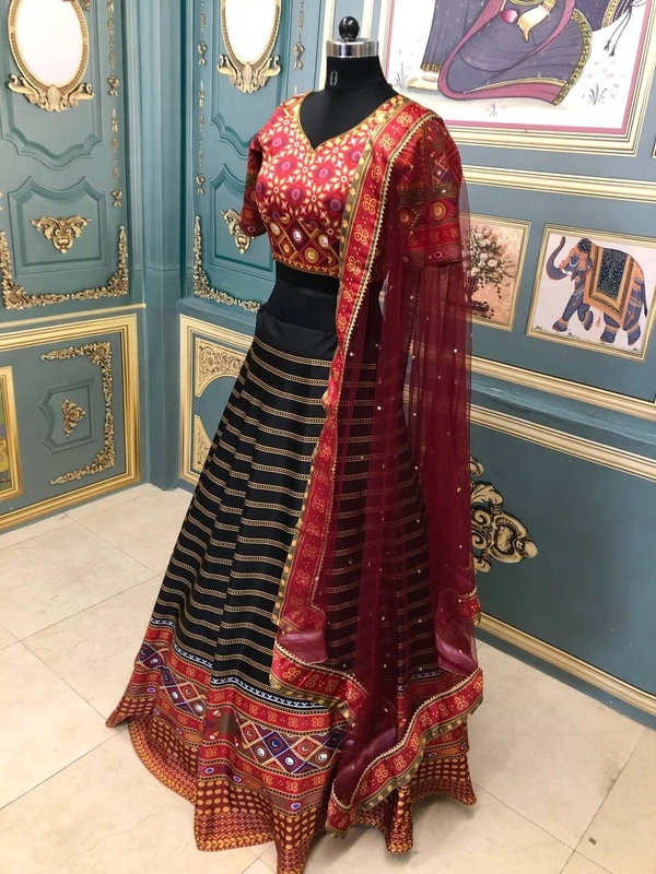 Ruby Red Lehenga (Semi Stitched)